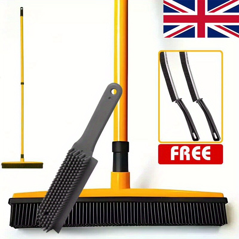 TEMU Long Handle Rubber Broom Pet Hair Fur Remover...