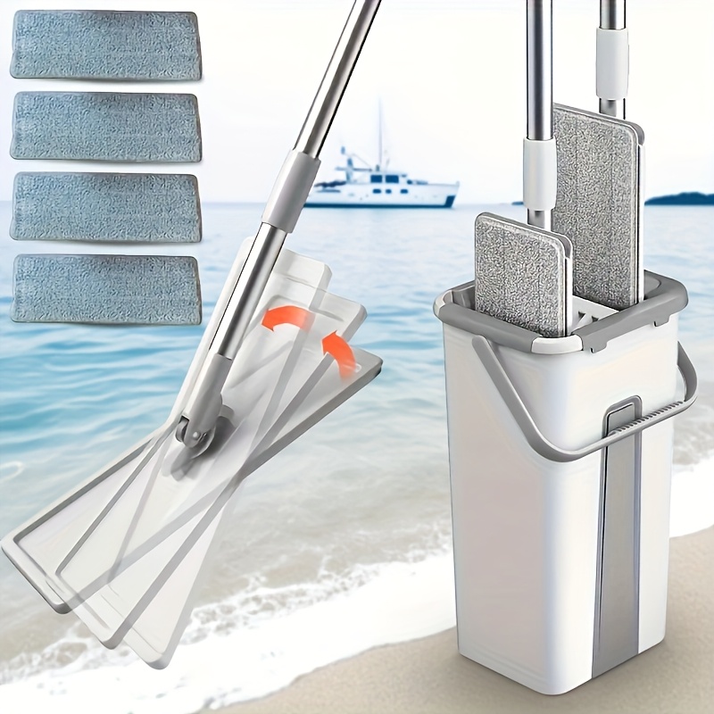 TEMU Easy-wring Mop And Bucket Set With 4 Microfib...