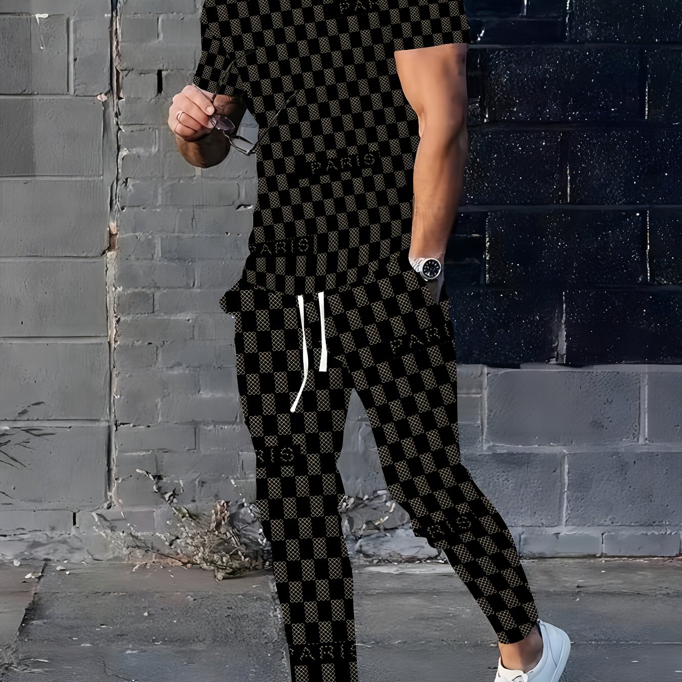 TEMU 1set Men's Novelty Casual Two-piece Set, Poly...