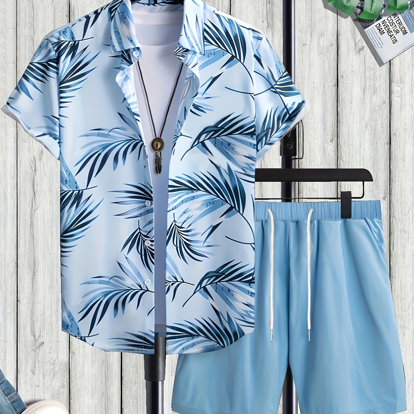 TEMU Men's 2pcs Set Of Casual Leaf Print Collared ...