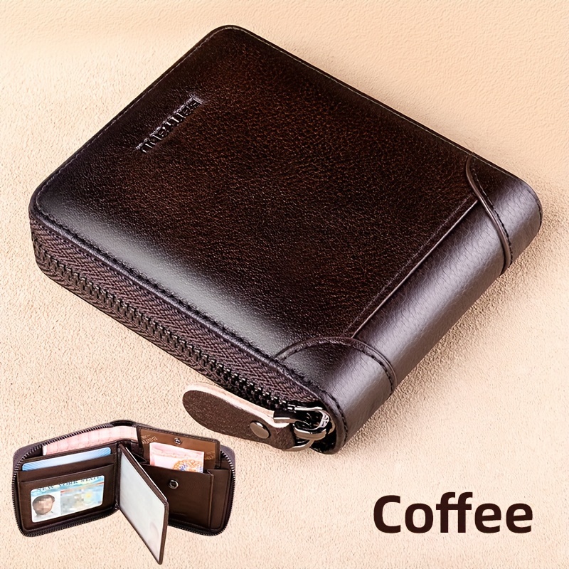 TEMU Men's Genuine Top Layer Cowhide Leather Walle...
