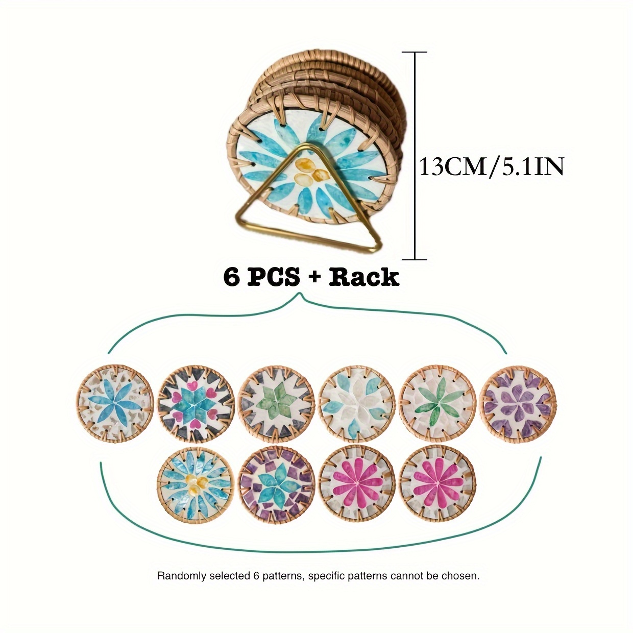 TEMU 6pcs, Asian Woven Rattan Colorful Shell Coast...