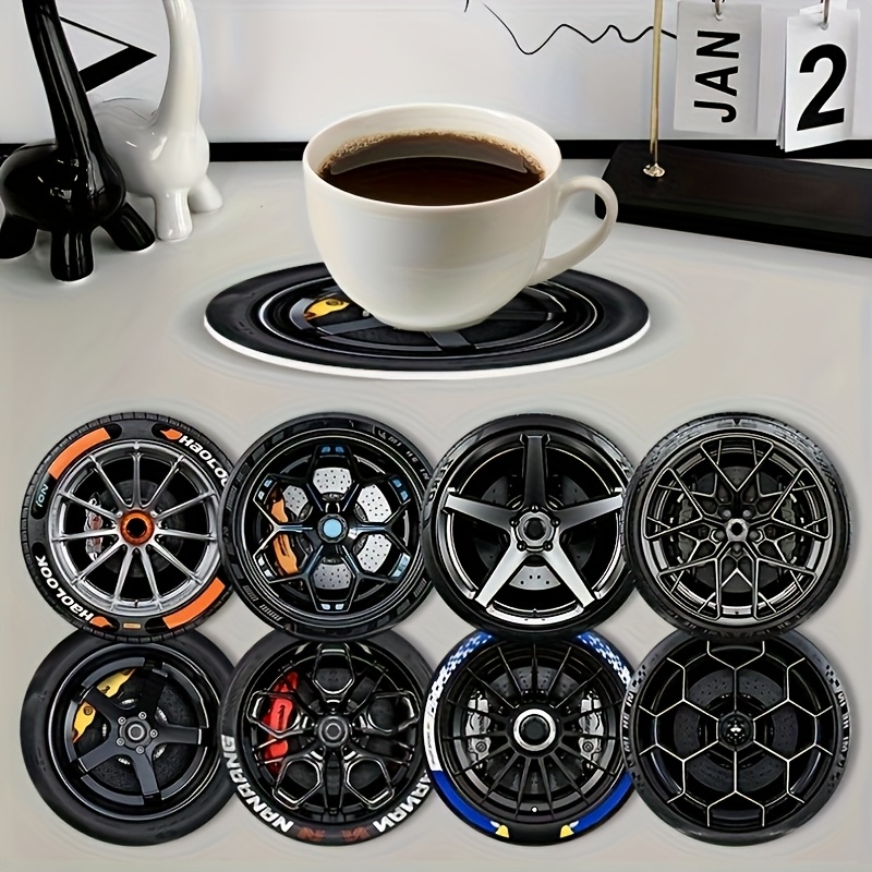 TEMU 8pcs Tire Wooden Coasters Set - Heat Resistan...