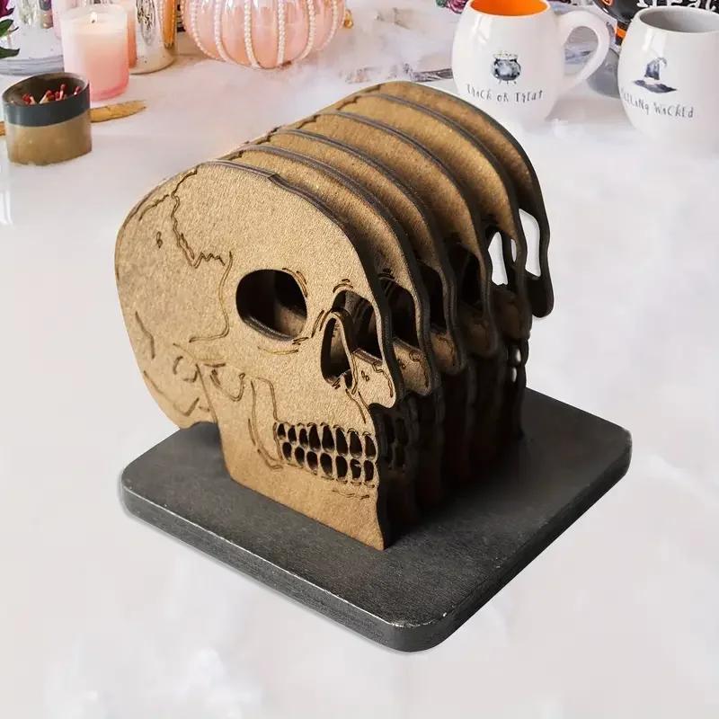 TEMU 6-pack Wooden Coasters, 3d Halloween Tabletop...