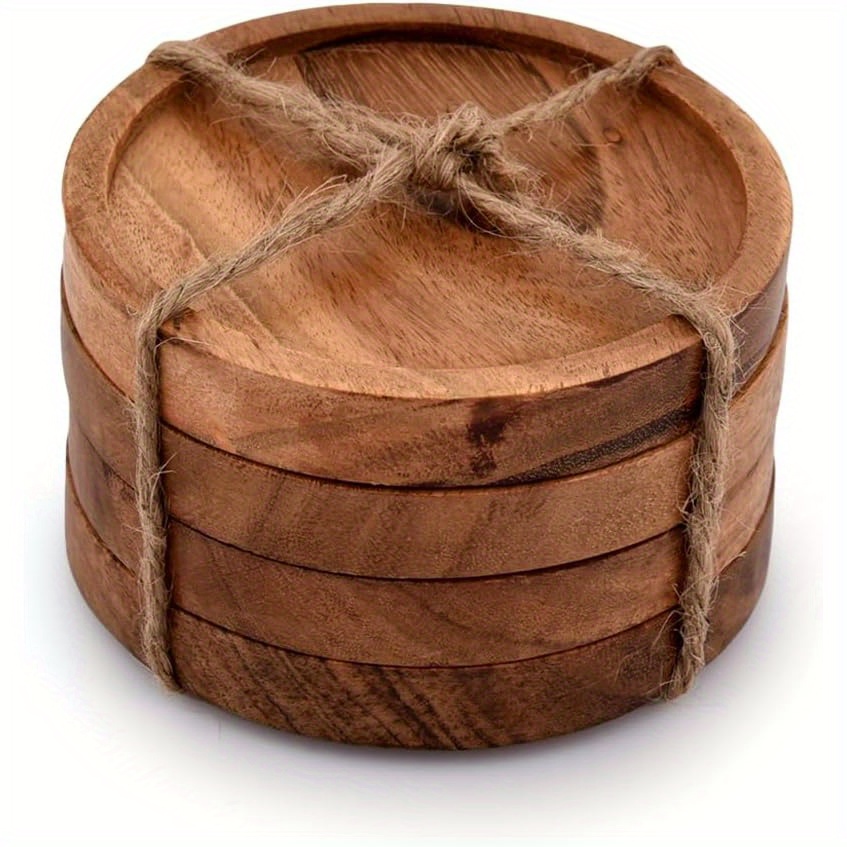 TEMU 4pcs Natural Acacia Wood Drink Coasters Set -...