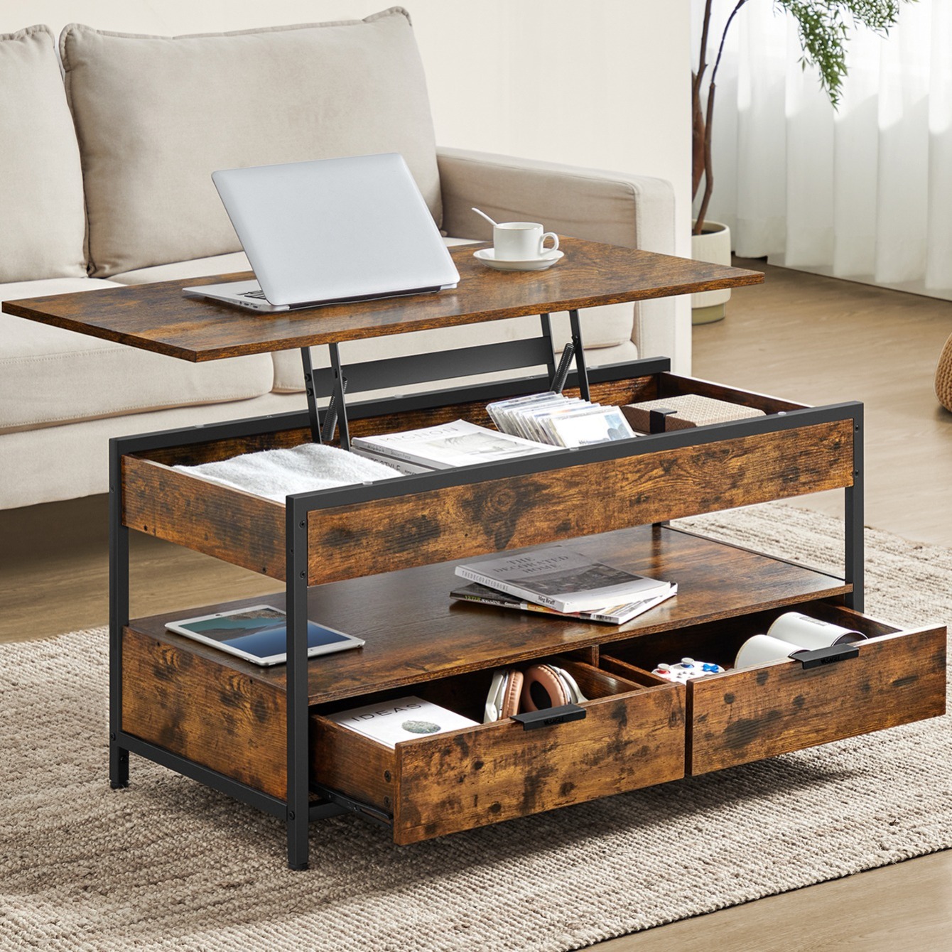 TEMU Vevor Lift Top Coffee Table, 39.4 In Rectangl...