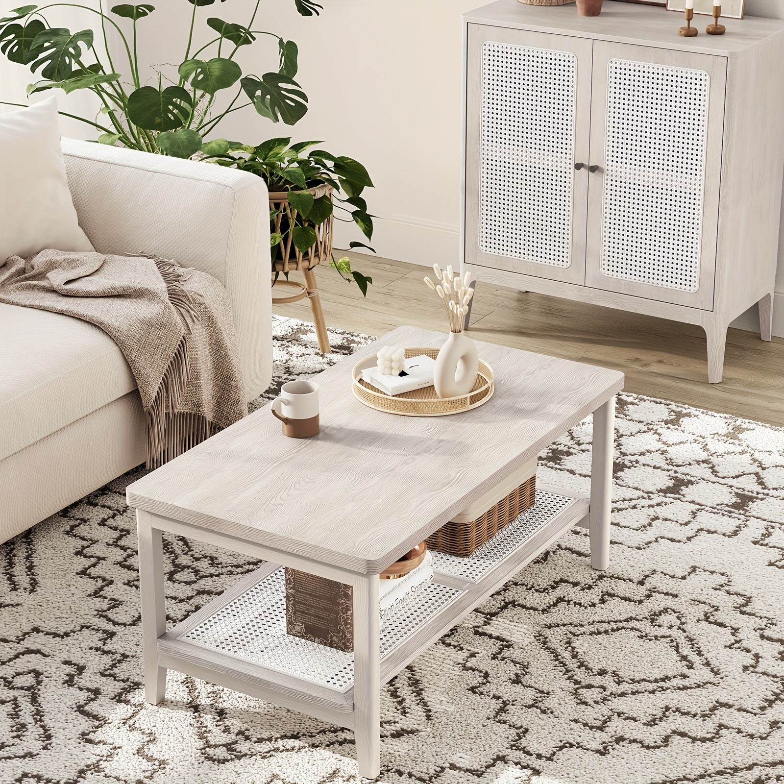 TEMU Boho Chic 2-tier Coffee Table With Rattan Sto...