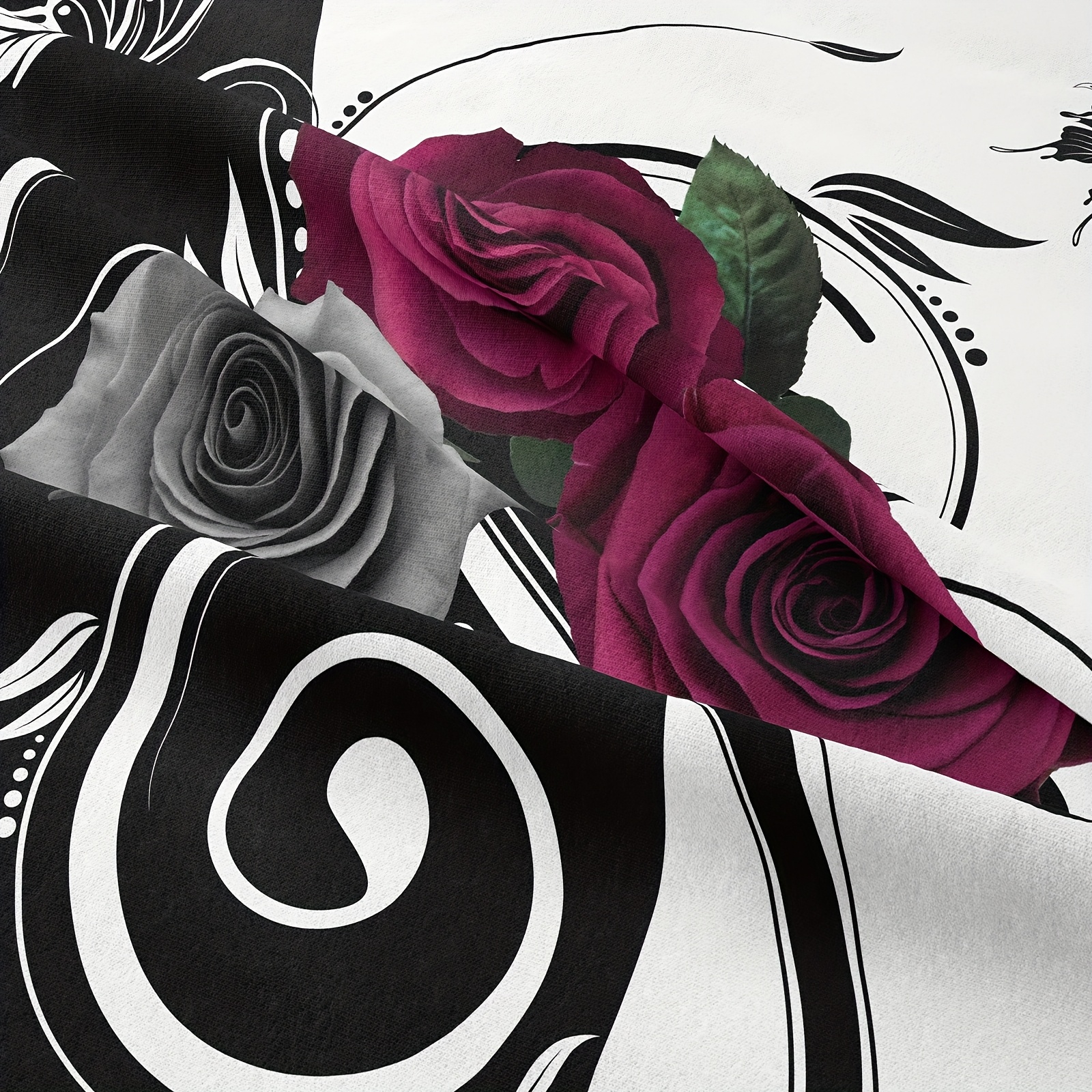 TEMU 2/3pcs Black And White Rose Pattern Bedding S...