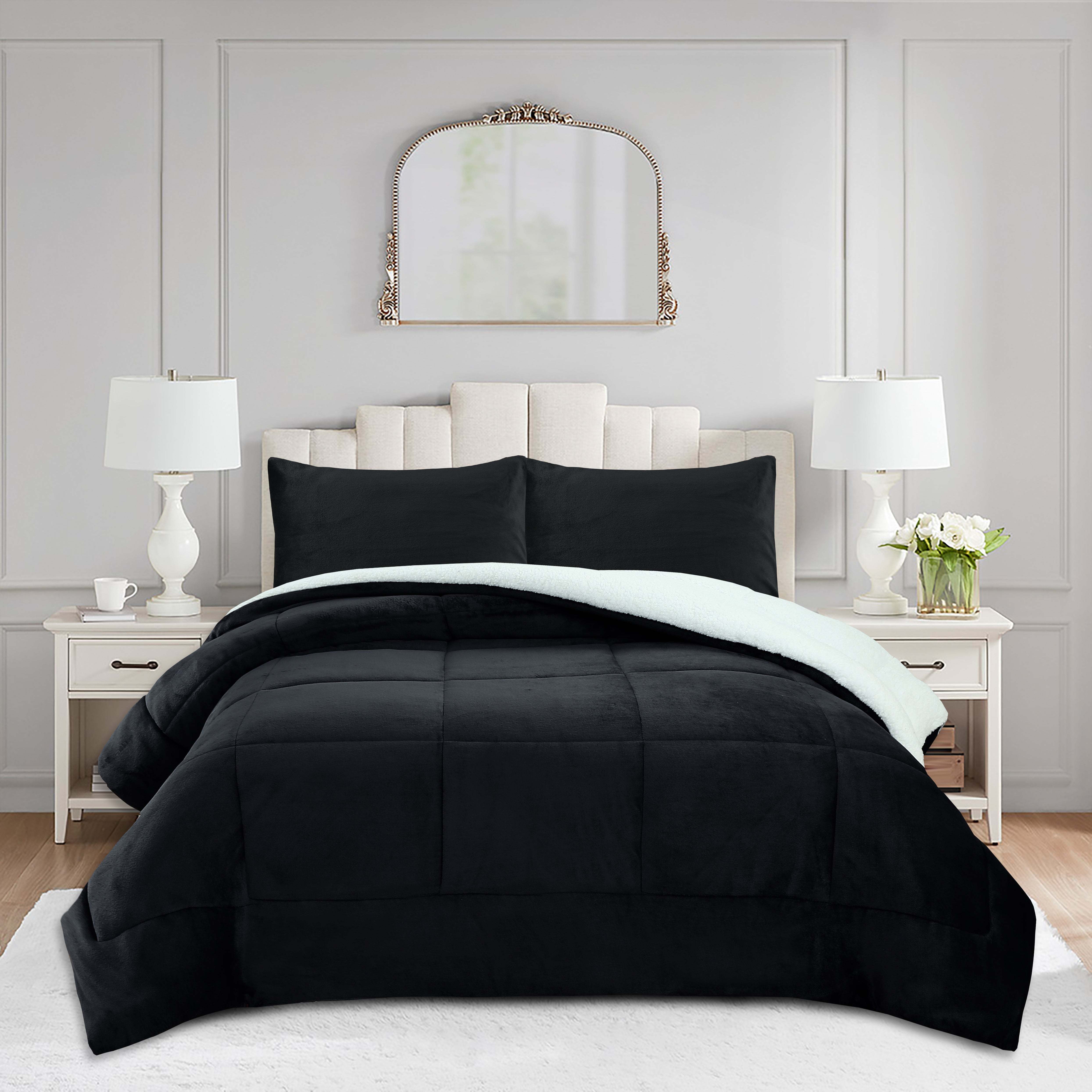 TEMU 3pcs Quilted Comforter Set With Sherpa Lining...