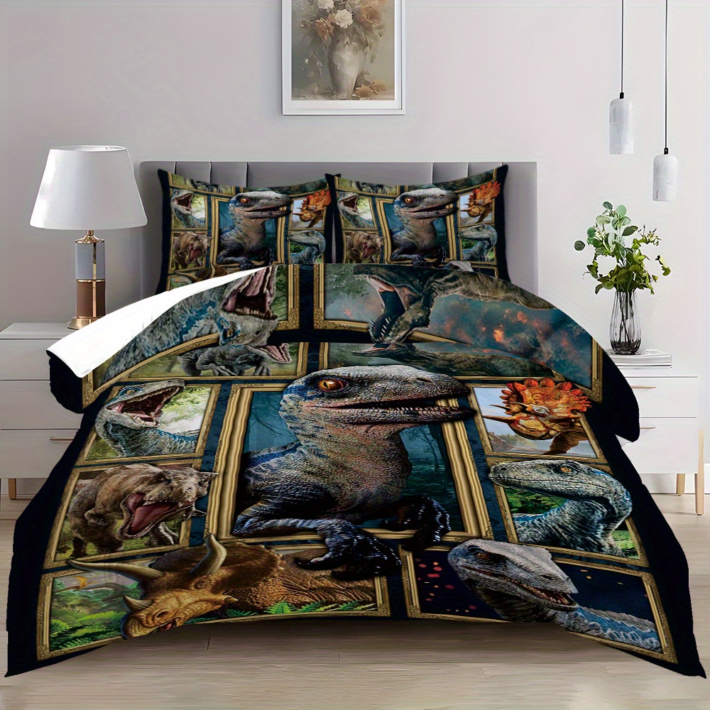 TEMU 3pcs Dinosaur Bedding Set, Polyester, Soft Co...