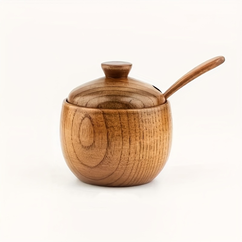 TEMU 1pc Retro Solid Wood Seasoning Box With Spoon...