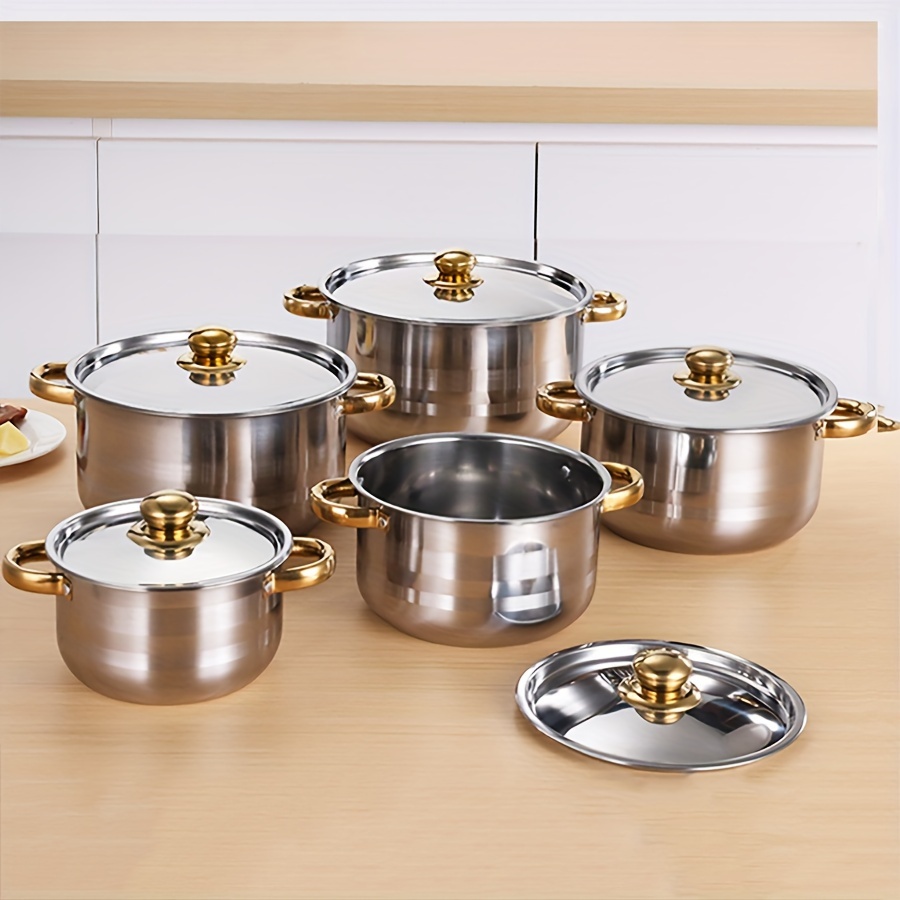 TEMU Stainless Steel Cookware Set 5-piece With Gol...