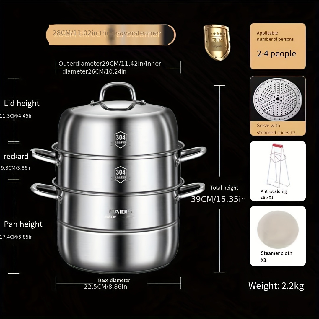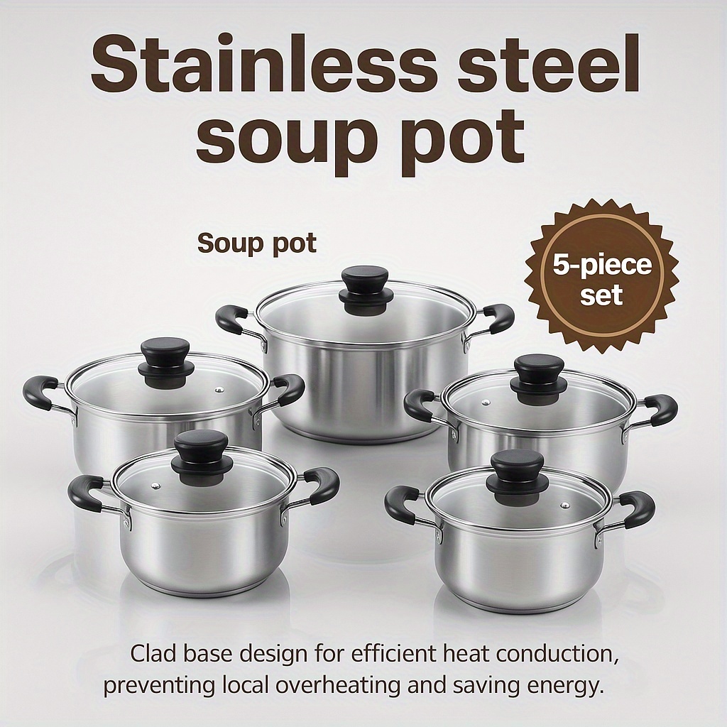 TEMU 5 Set Stainless Steel Cookware Set With 5 Pot...