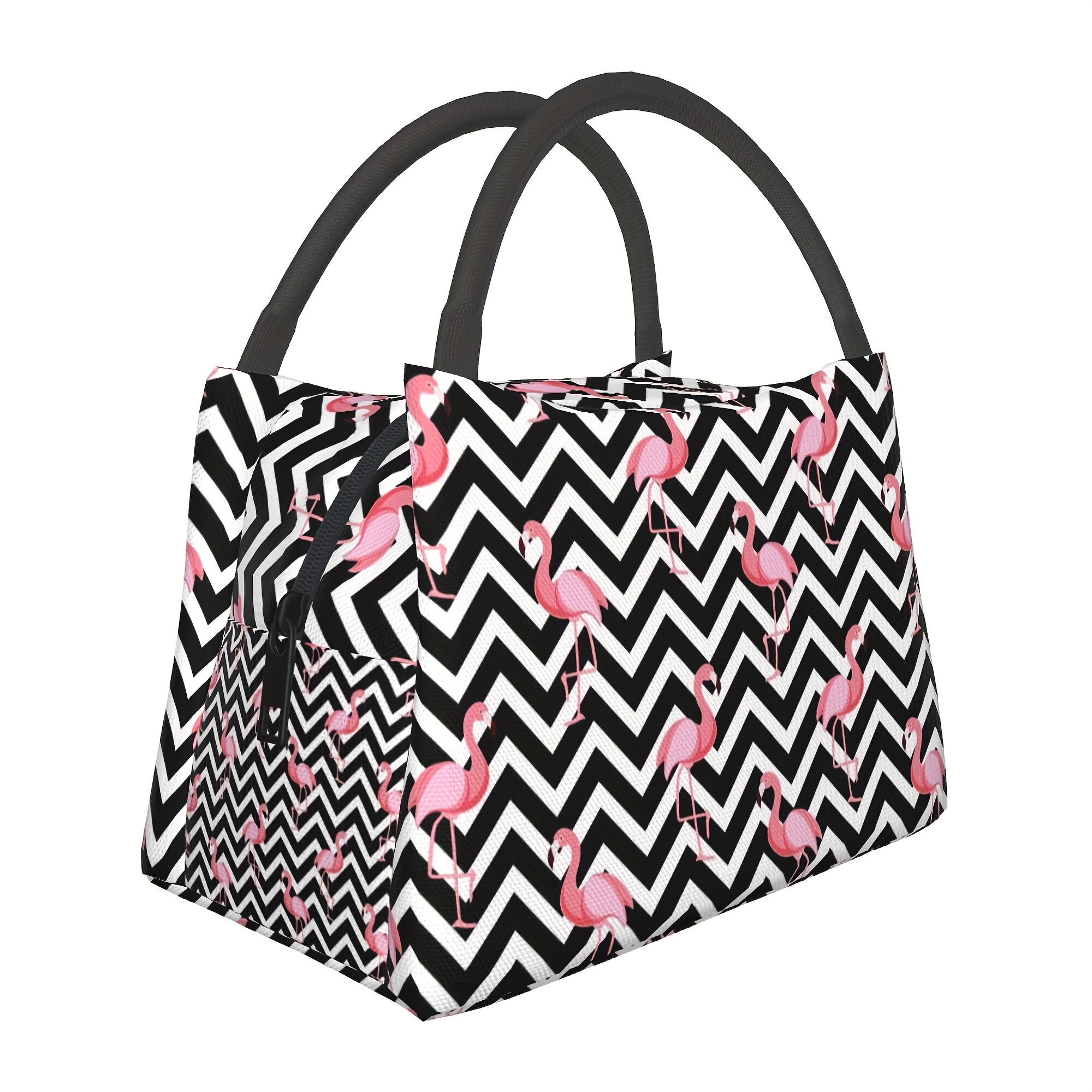 TEMU 1pc Black Striped Flamingo, Reusable Cooler B...