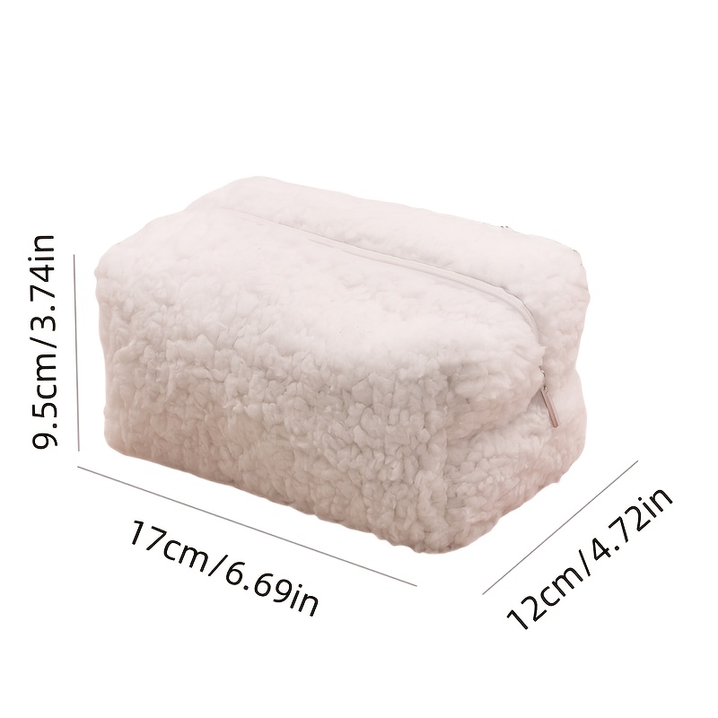 TEMU Sheepskin-like Fluffy Cosmetic Bag, , Polyest...