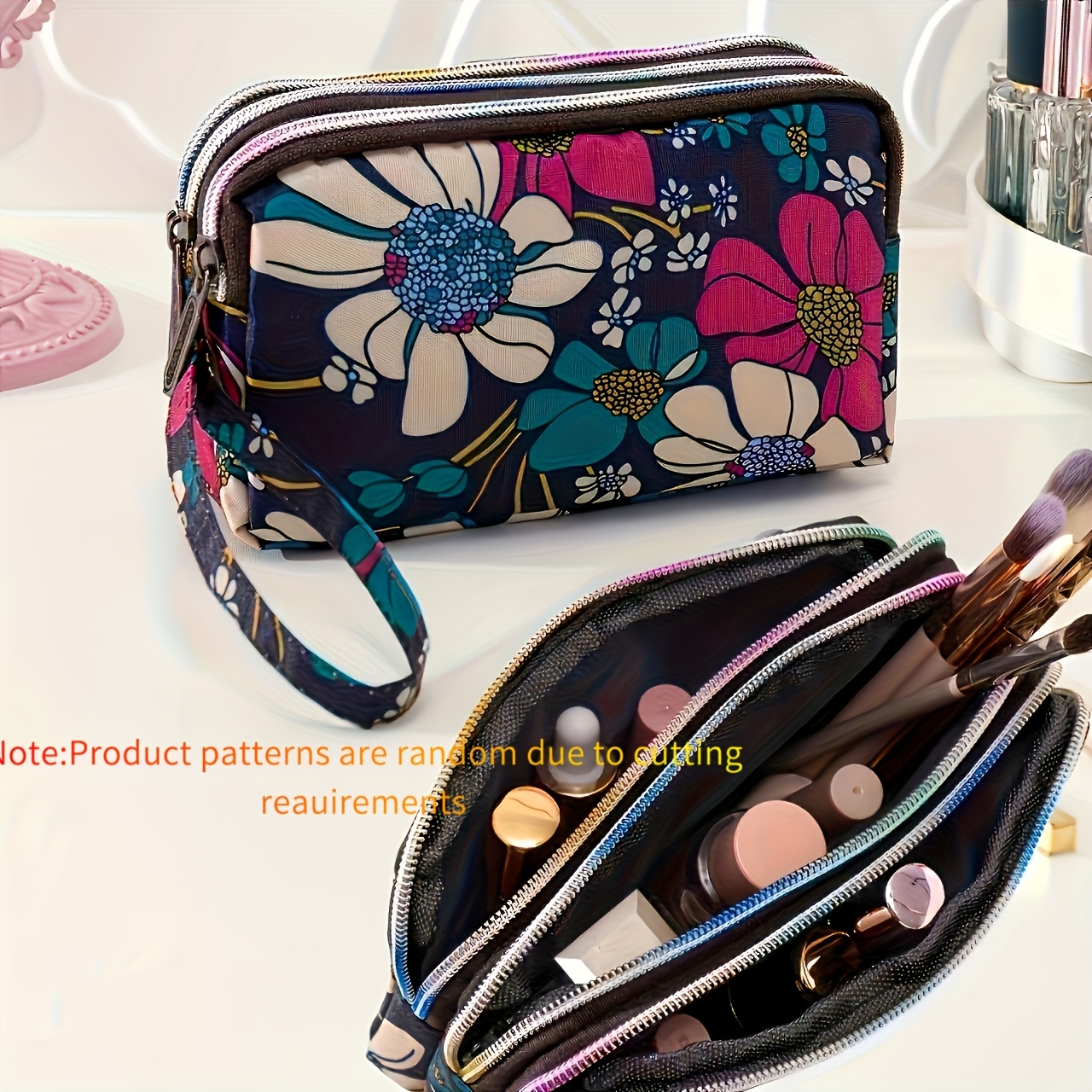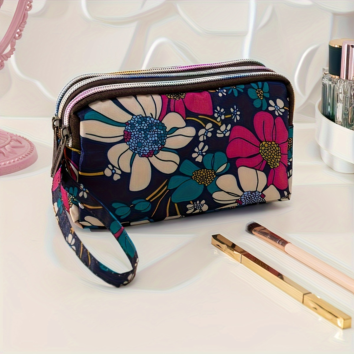TEMU Floral Print Cosmetic Bag With Wristlet - Dur...