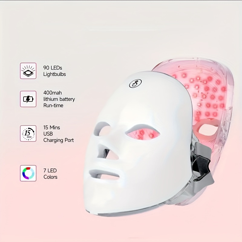 TEMU Usb Rechargeable 7-color Led Facial Mask - Fr...