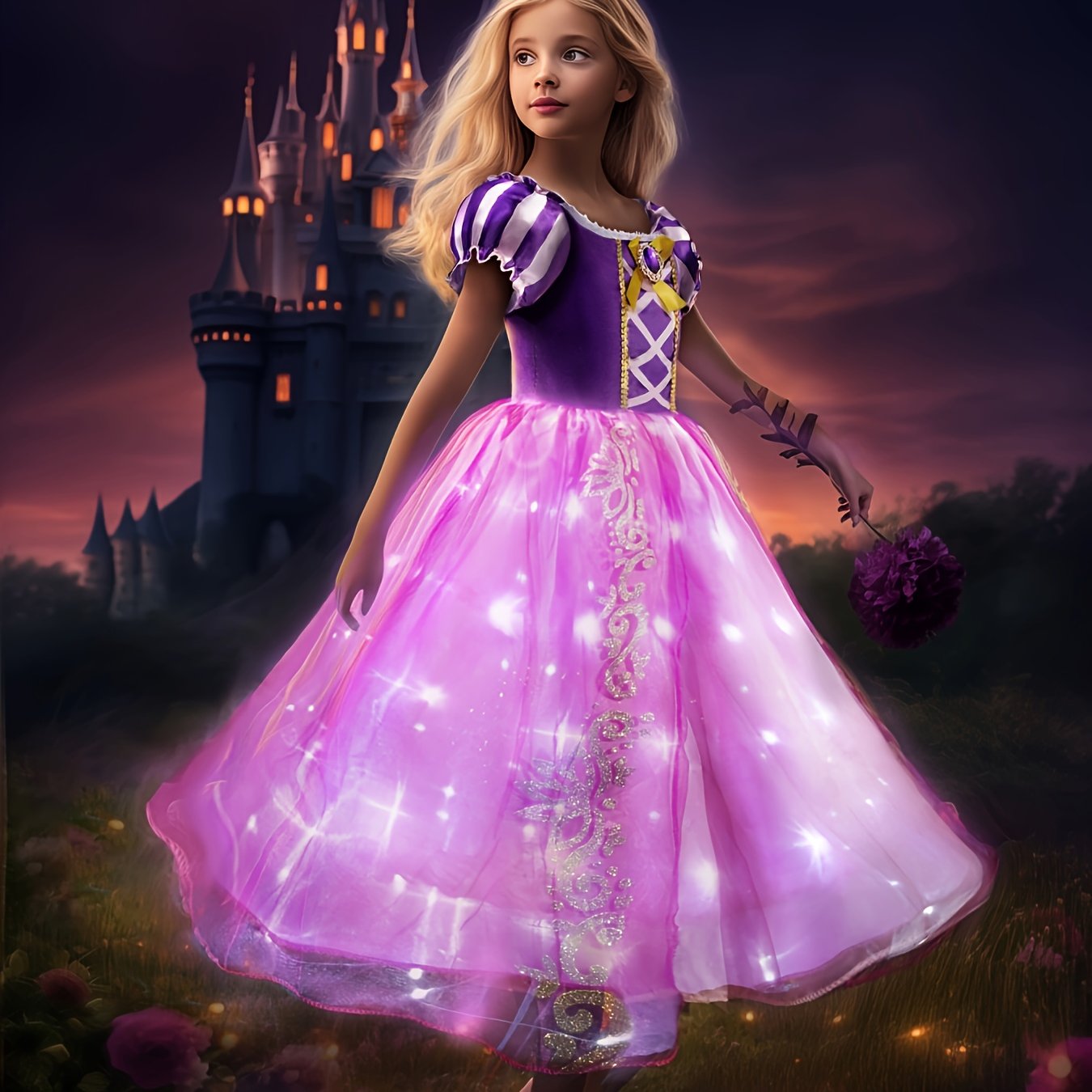 TEMU 1pc Uporpor Light-up Princess Dress, Short Sl...