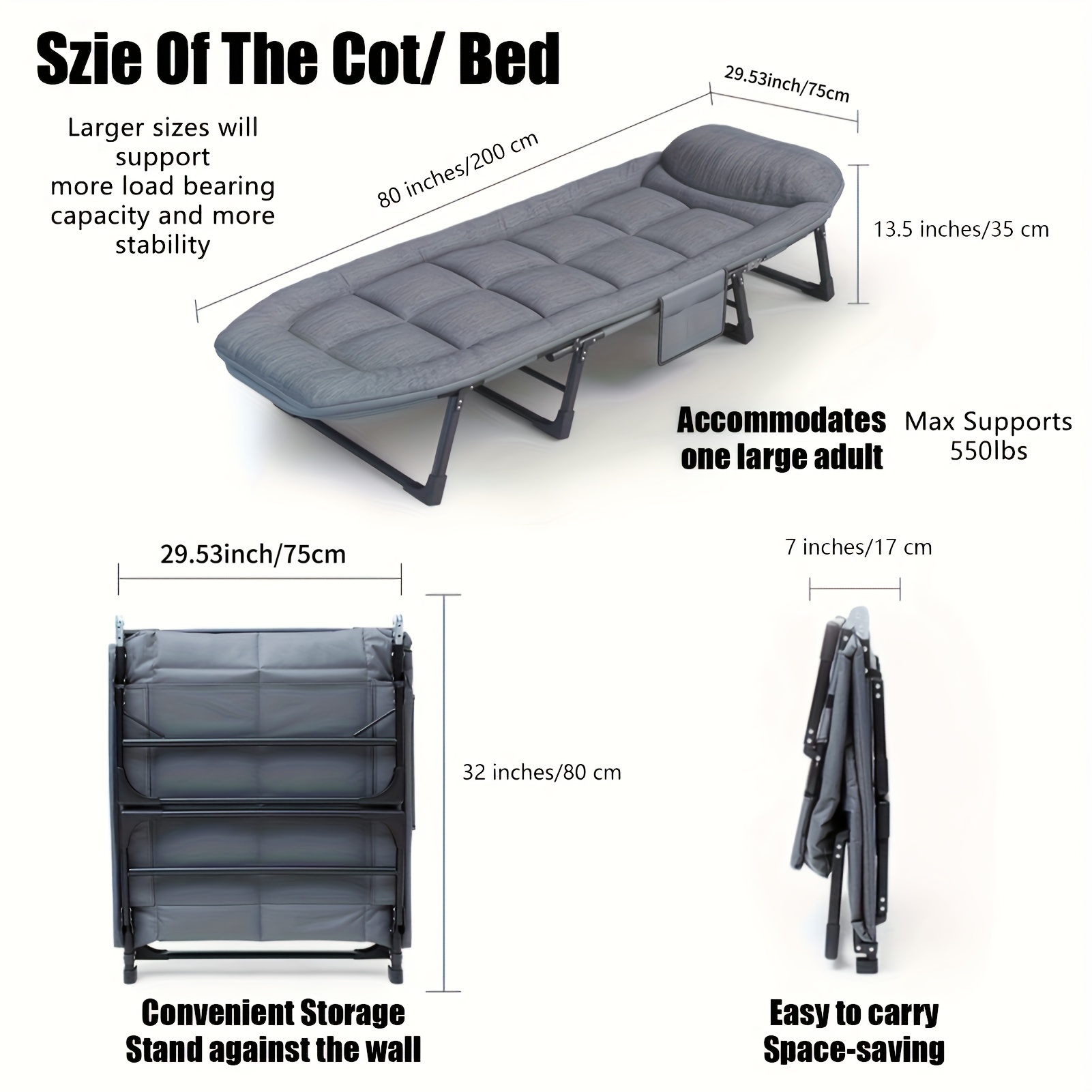 TEMU Heavy-duty Folding Camping Bed For Adults - P...