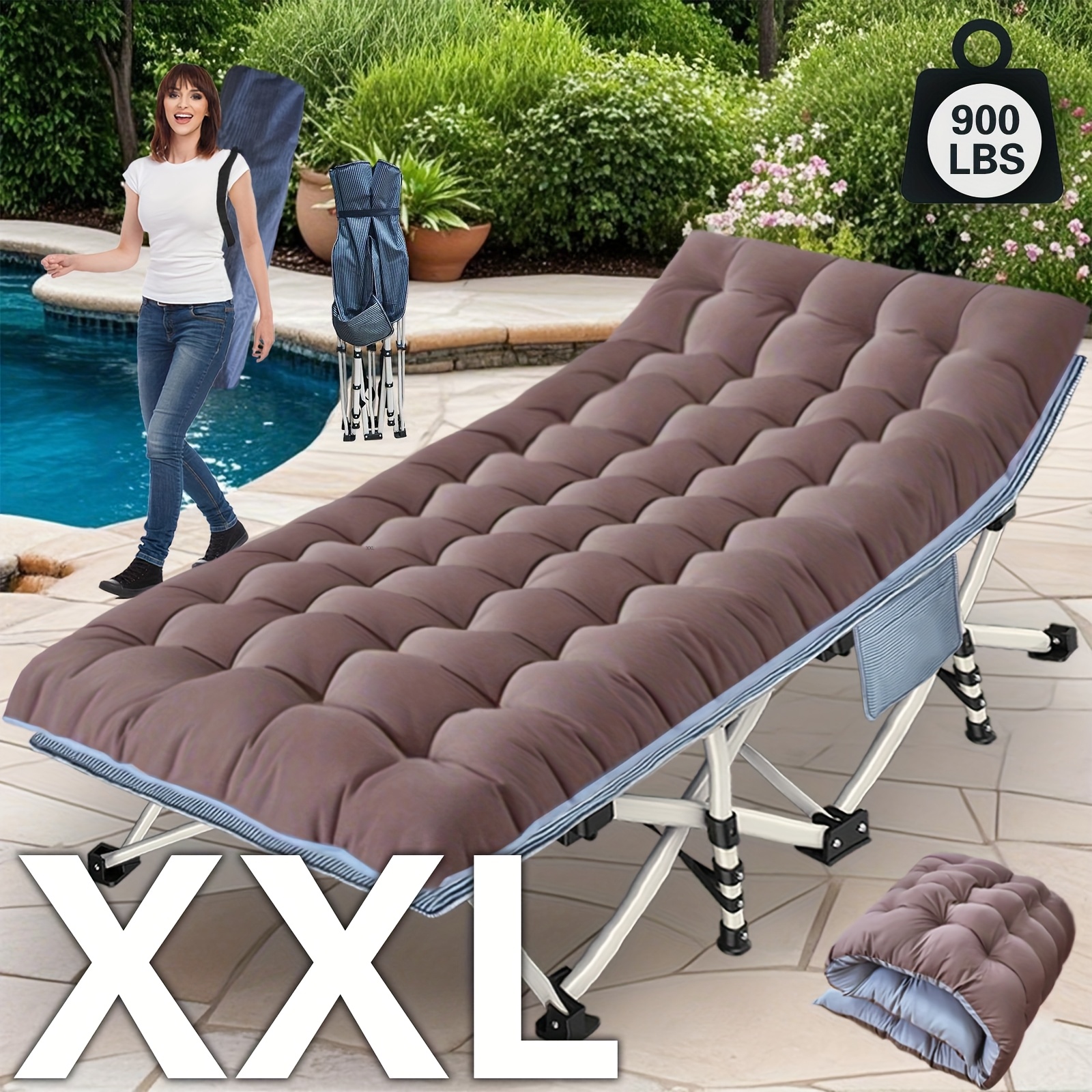TEMU Oversized Xxl Folding Camping Cot W/mat For A...