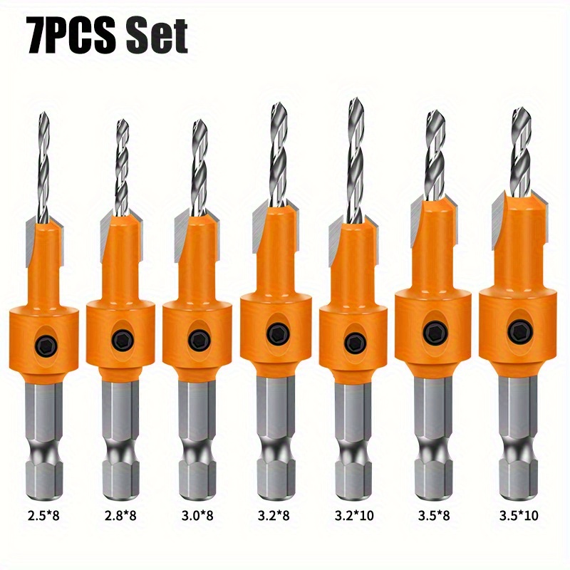 TEMU 7pcs Countersink Drill Bit Set, 8mm Round Sha...