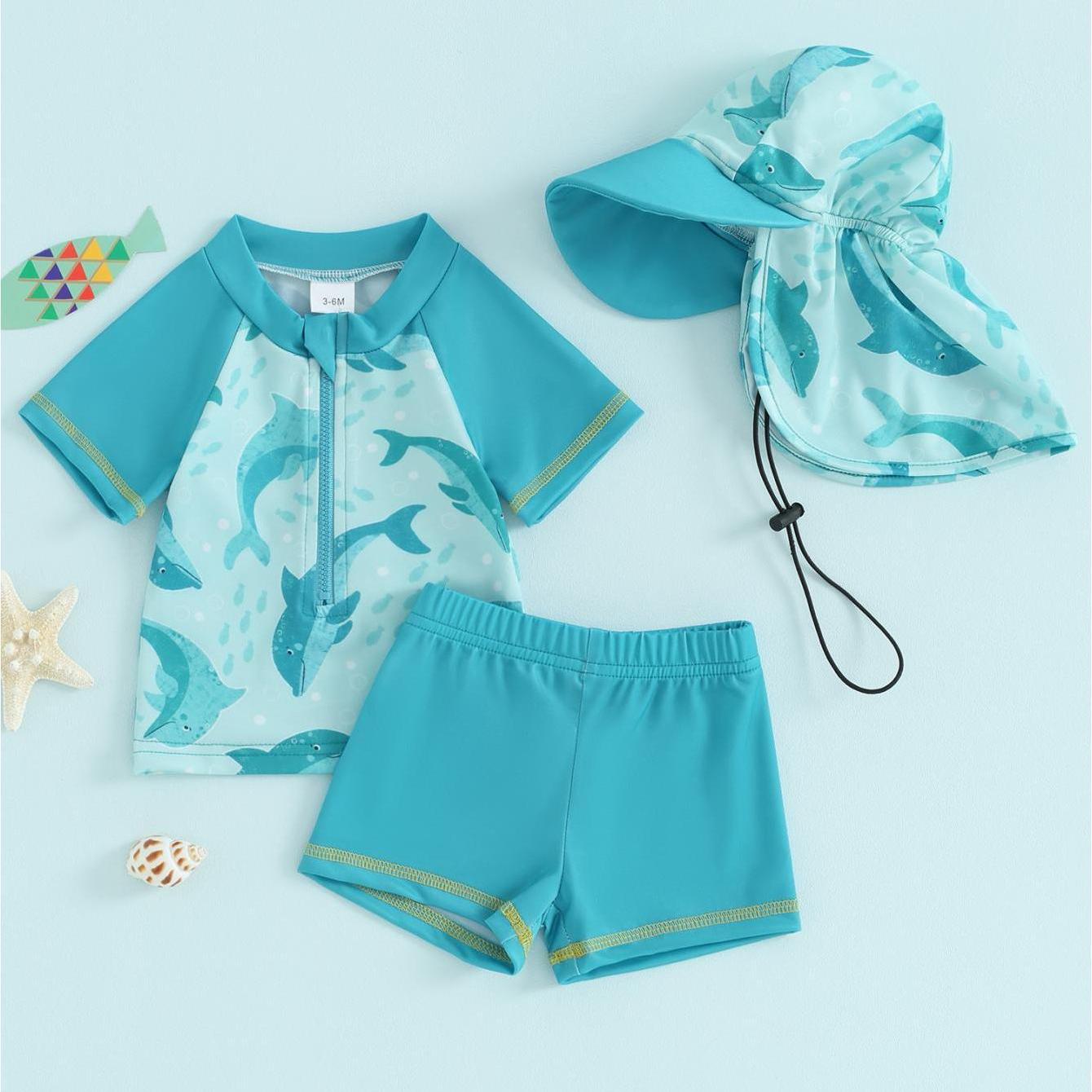 TEMU Baby Kids Boys Rash Guard Set, Short Sleeve S...