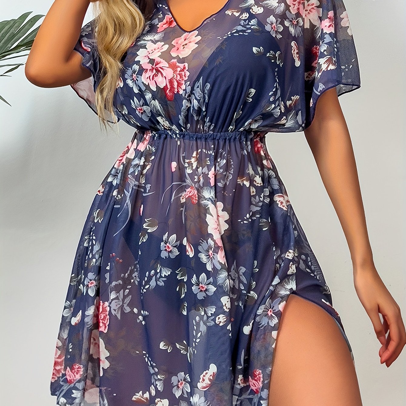 TEMU Women's Elegant Tropical Print Cover-up Dress...