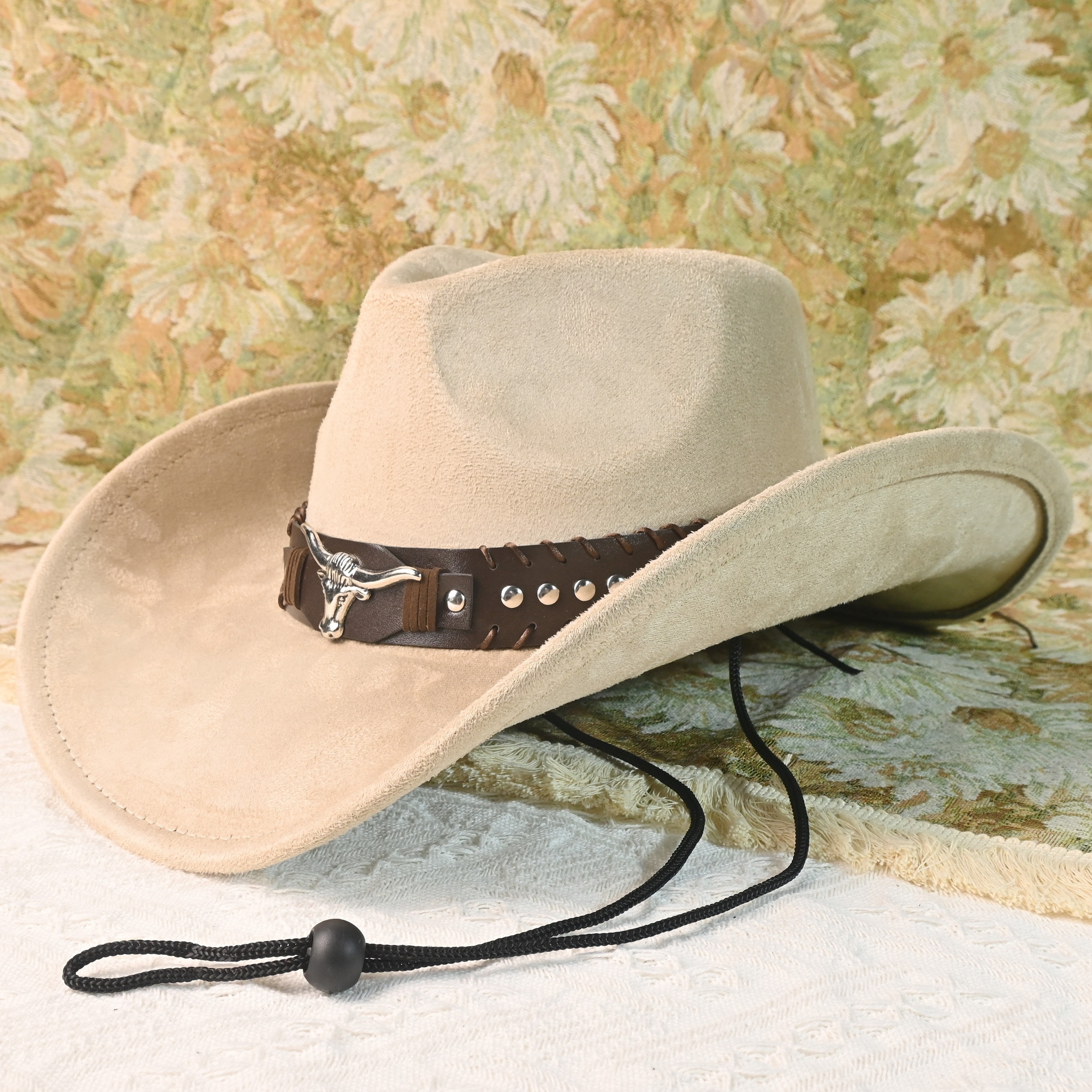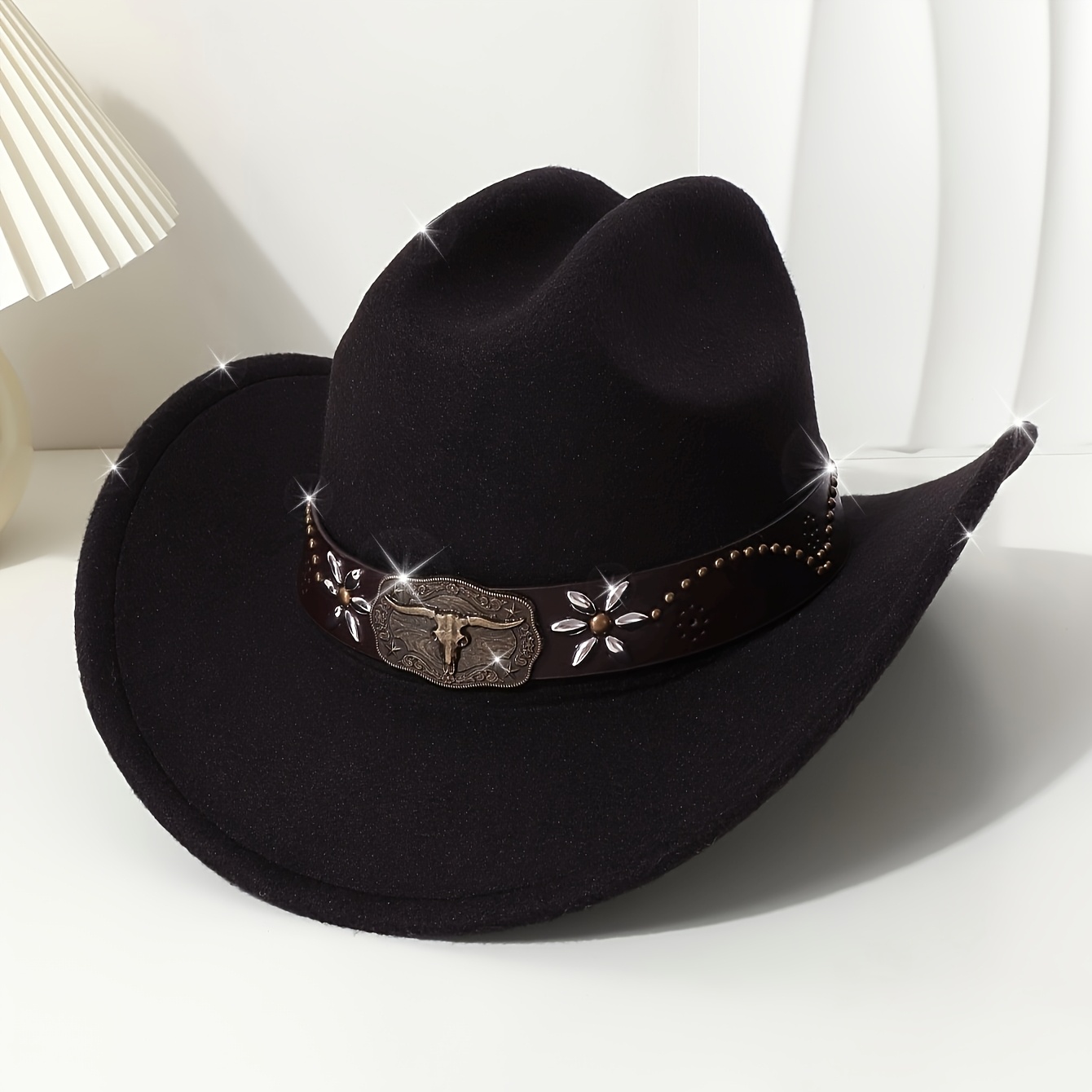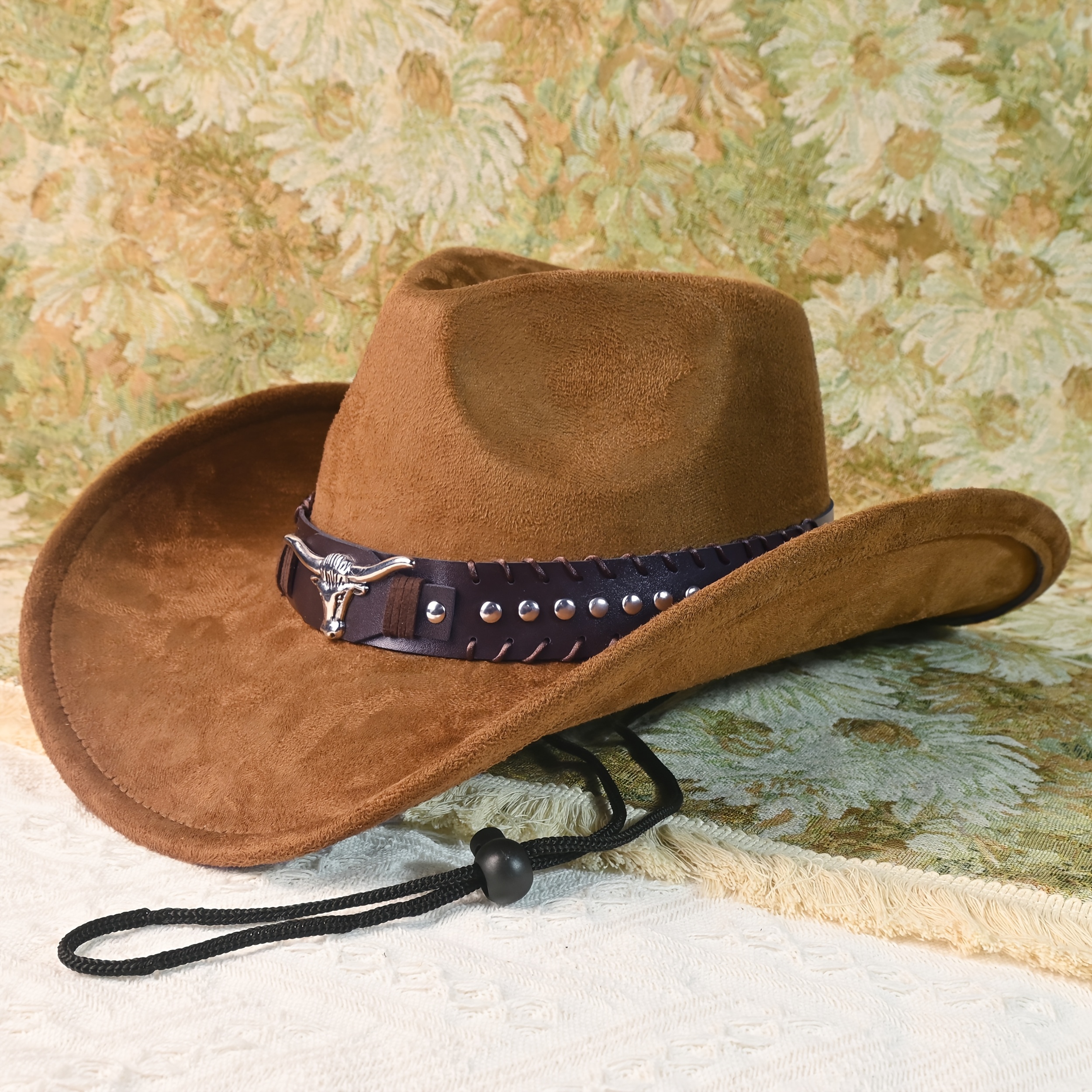 TEMU 1pc Western Cowboy Hat With Embossed Bull Hea...