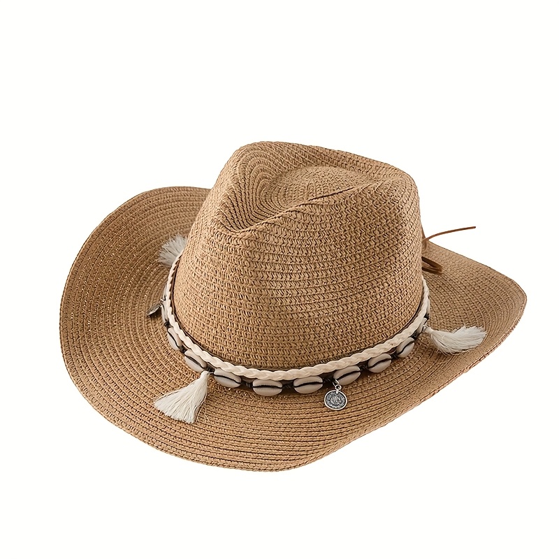 TEMU Boho Western Cowboy Hat Tibetan Style Straw H...
