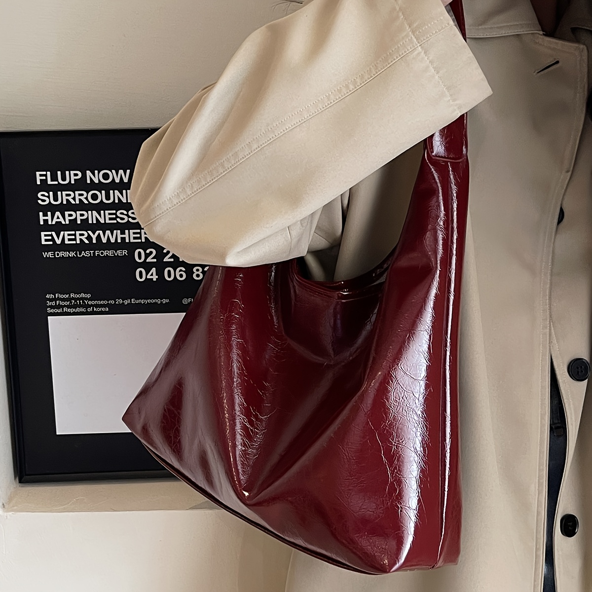 TEMU 버건디 레드 원숄더 백, 스타일리시한 도시 레드 크로스바디 백 - 자기 닫힘, 폴...