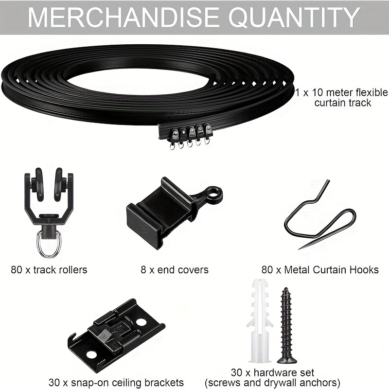 TEMU 1 Set Of 5m/10m/20m Black Curtain Track Set W...