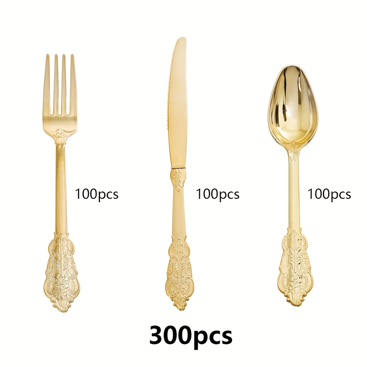 TEMU 300pcs Golden Retro Plastic Tableware Set - R...