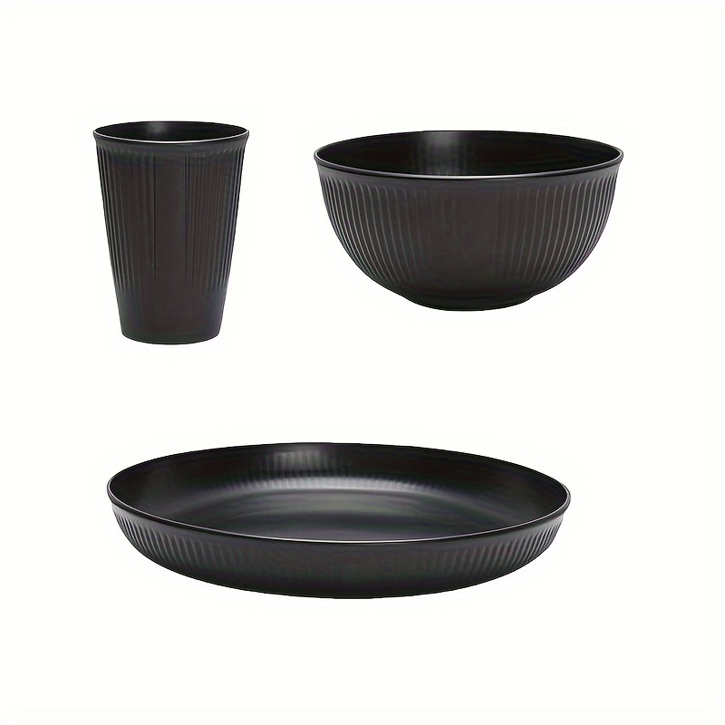 TEMU Black Wheat Straw Tableware Set - Includes Pl...