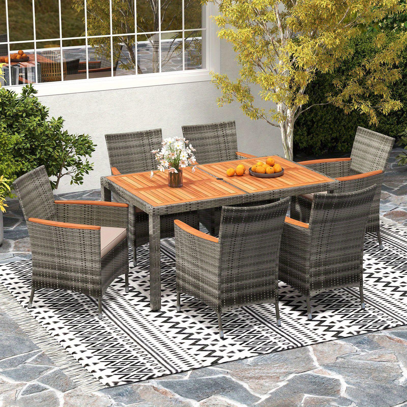 TEMU Multigot 7pcs Outdoor Wicker Dining Set With ...