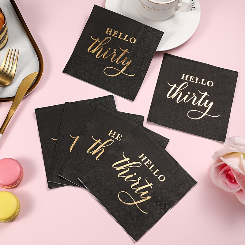 TEMU 20pcs Black 'hello Thirty' Printed Napkins, 3...