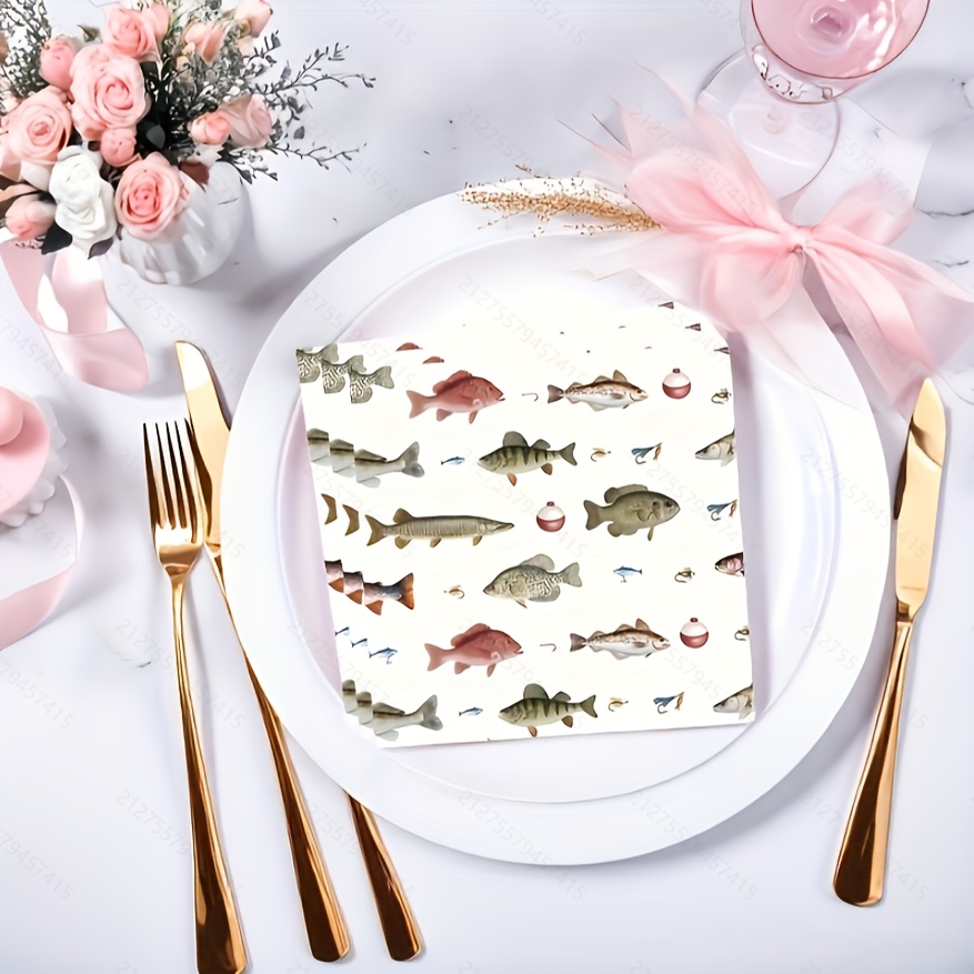 TEMU 20pcs Fish-themed Napkins For Holidays, Birth...