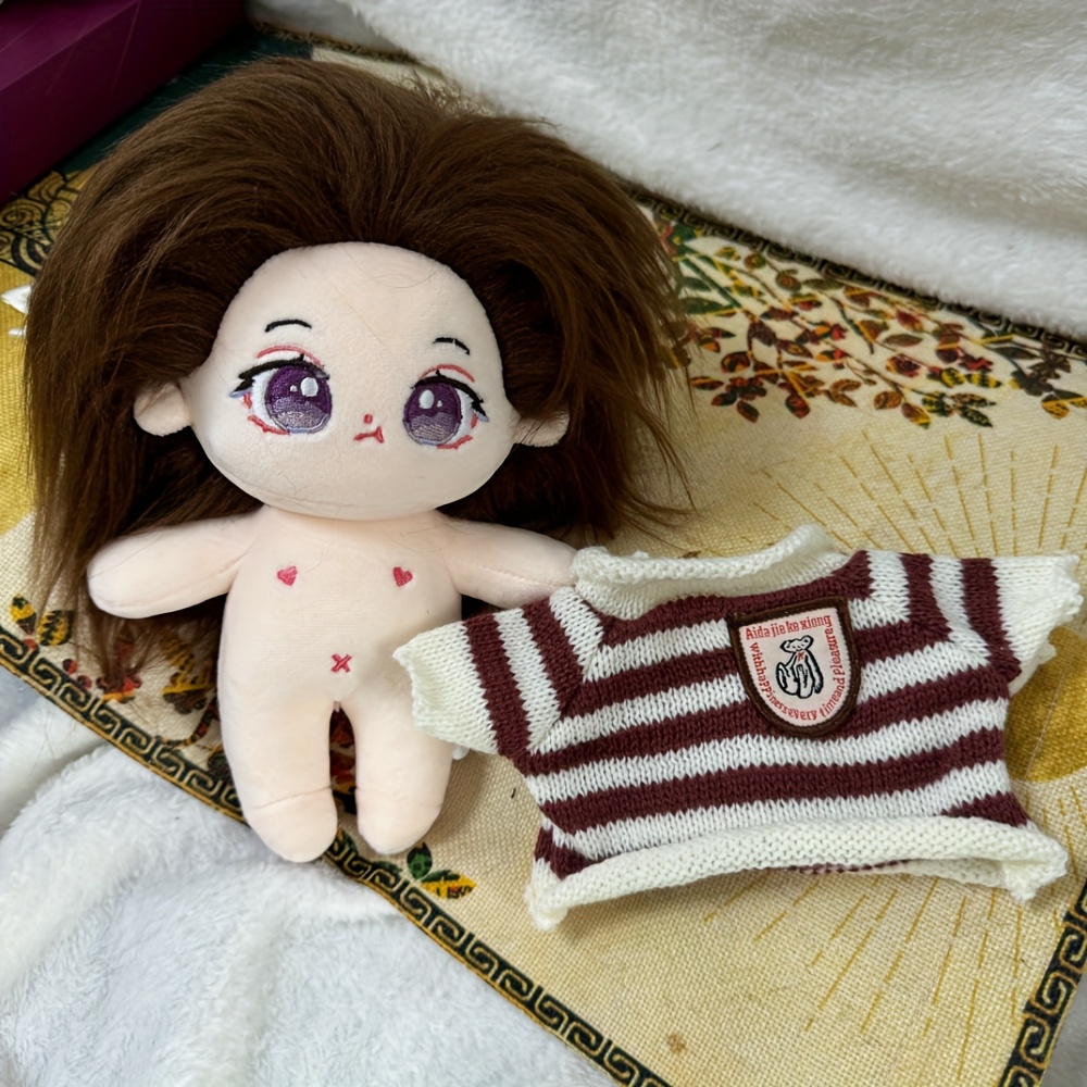 TEMU 20cm Plush Doll With Brown Long Hair, Striped...