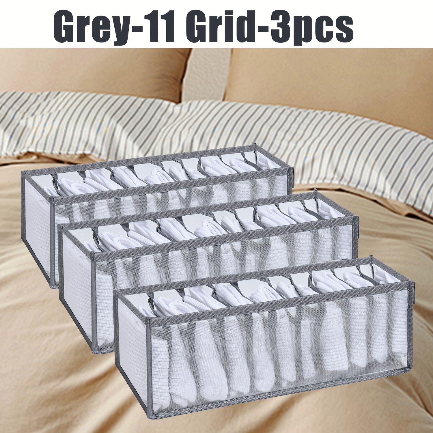 TEMU 3 Pieces 7-grids Closet Socks Organizer - Fol...