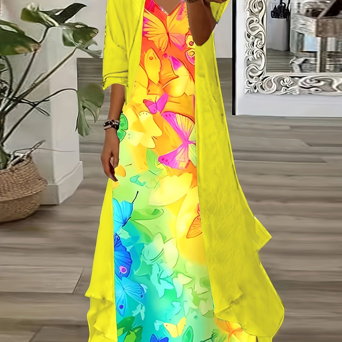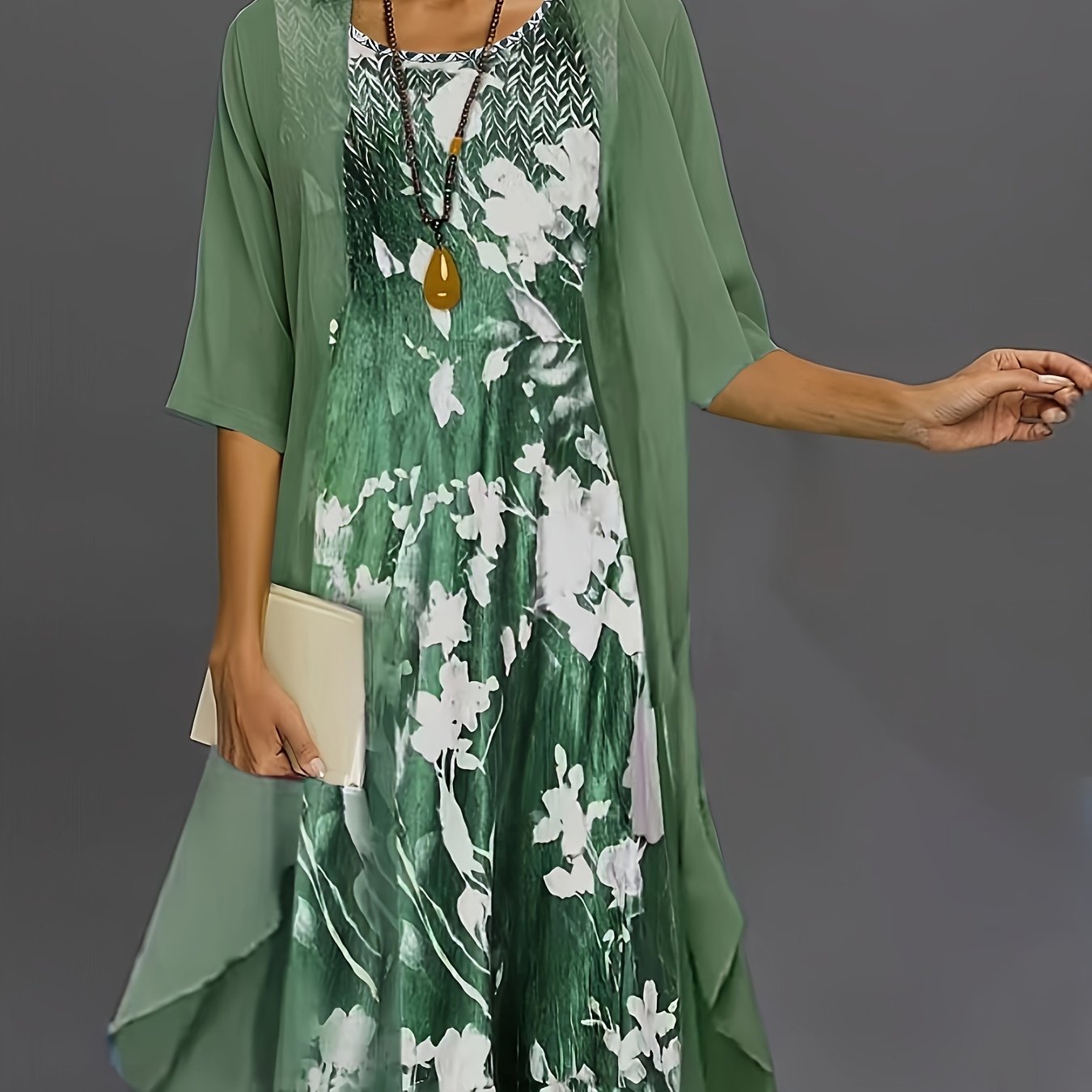 TEMU Elegant Floral Print Dress Set, Lightweight O...