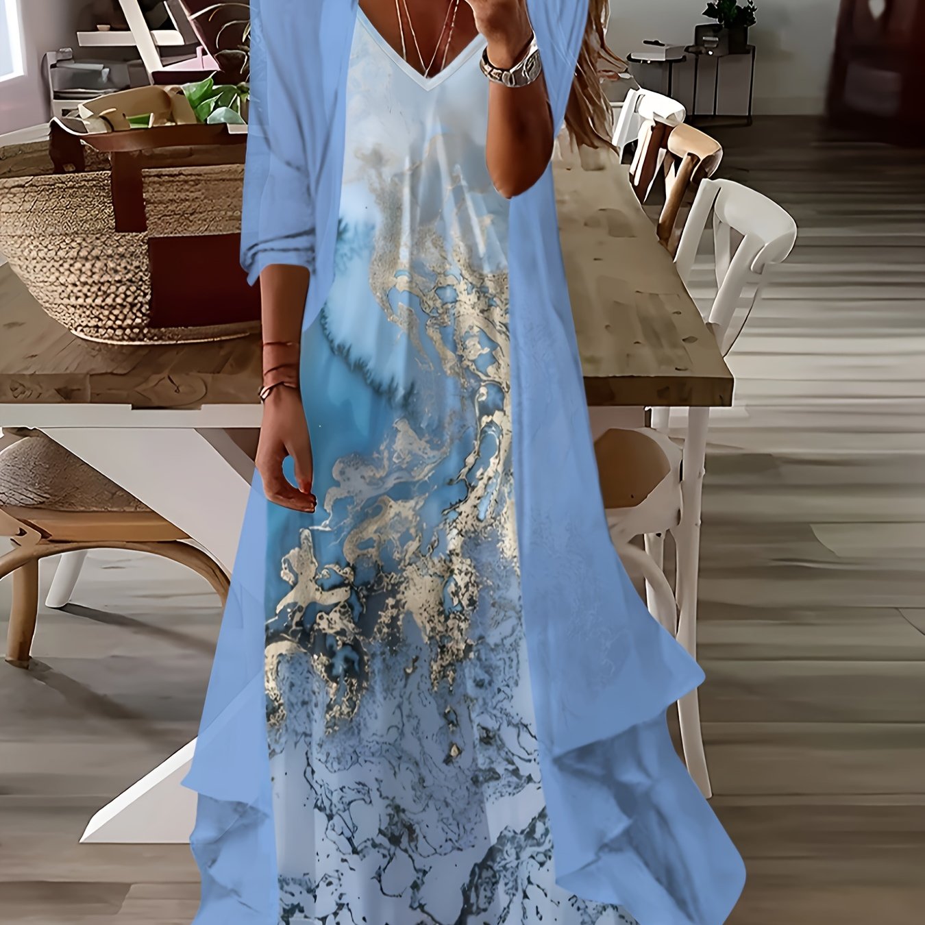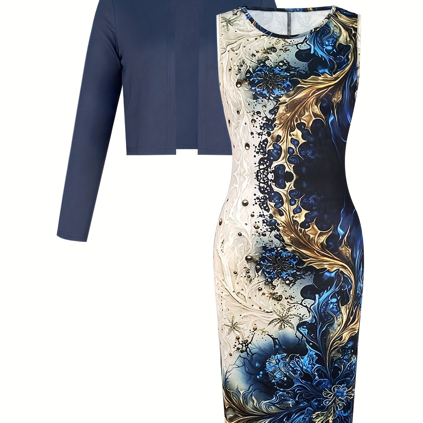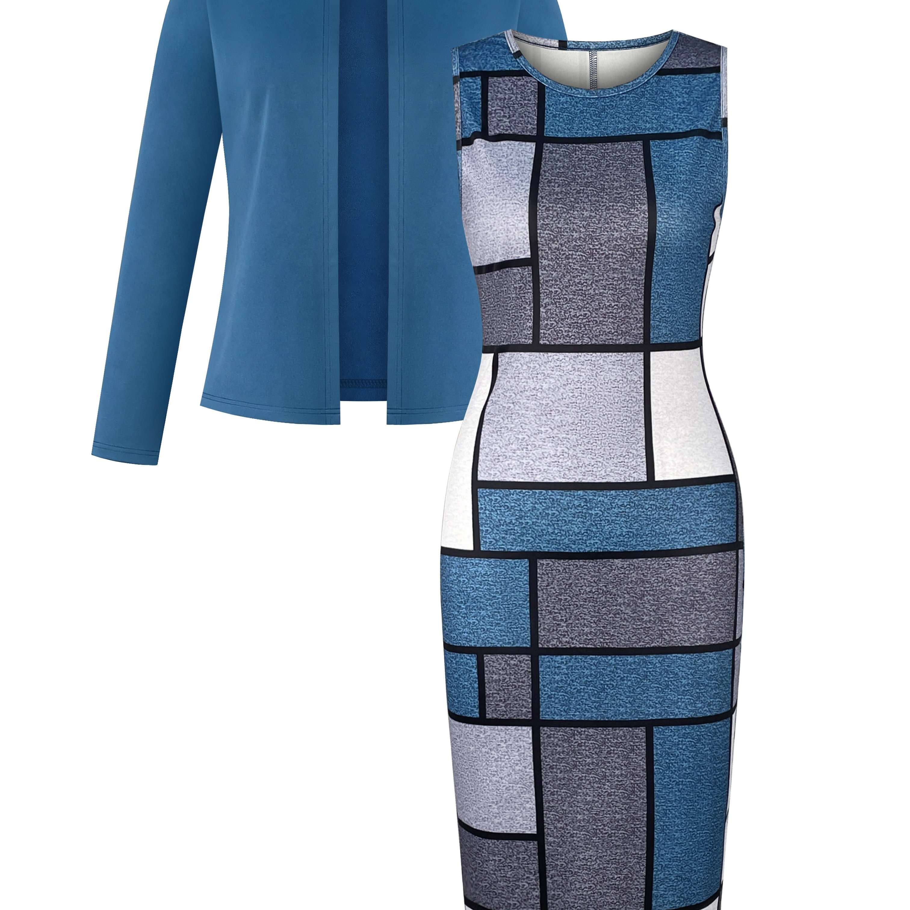 TEMU 2 Pcs Elegant Geo Print Tank Dress Set, Long ...
