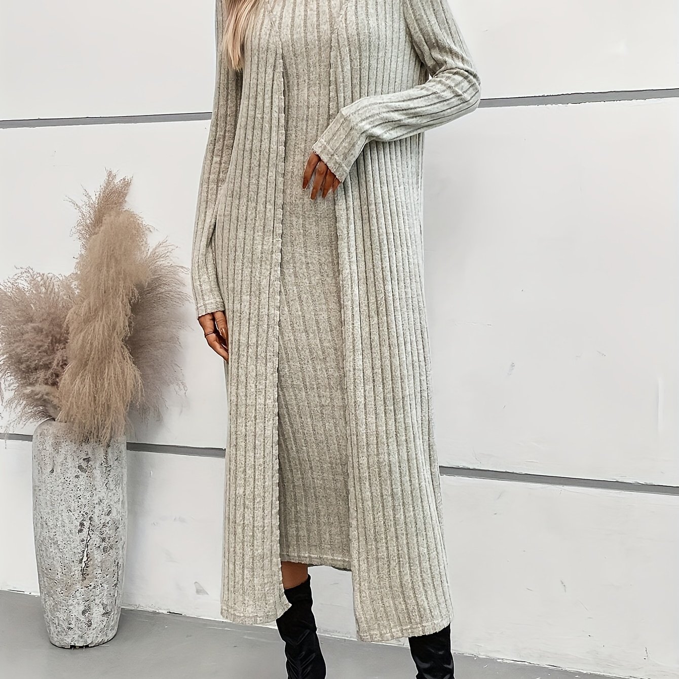 TEMU Elegant Solid Color Dress Set, Long Sleeve Op...