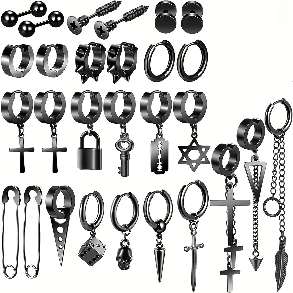 TEMU 30pcs Earrings For Men Black Silvery Golden S...