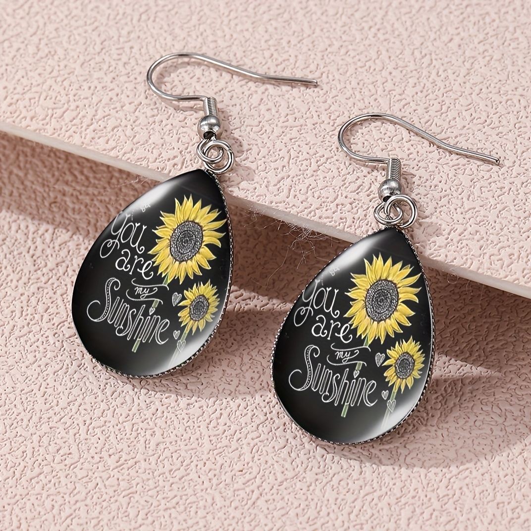 TEMU You Are My " Chic Sunflower Drop Earrings - A...