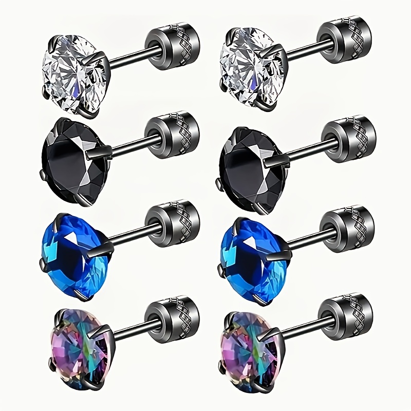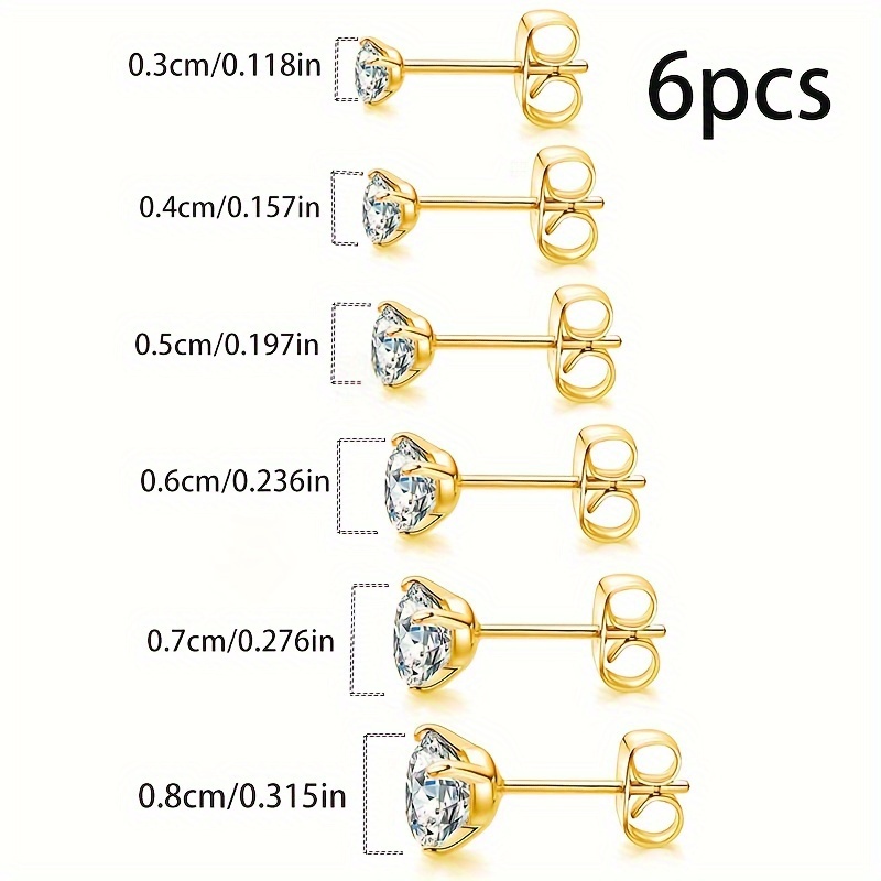 TEMU 4 Pairs 6mm Screw-back Stainless Steel Cubic ...