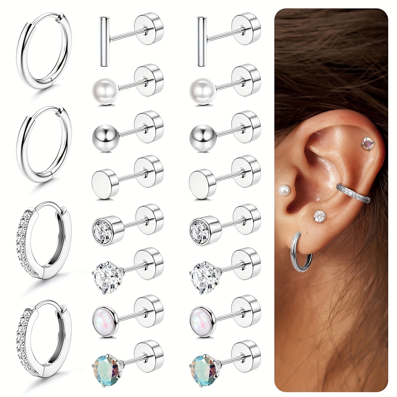 TEMU 5 Paare Silberne Steckerohrringe Set, Hypoall...