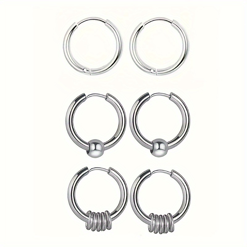 TEMU 3pairs Stainless Steel Ball Decor Hoop Earrin...