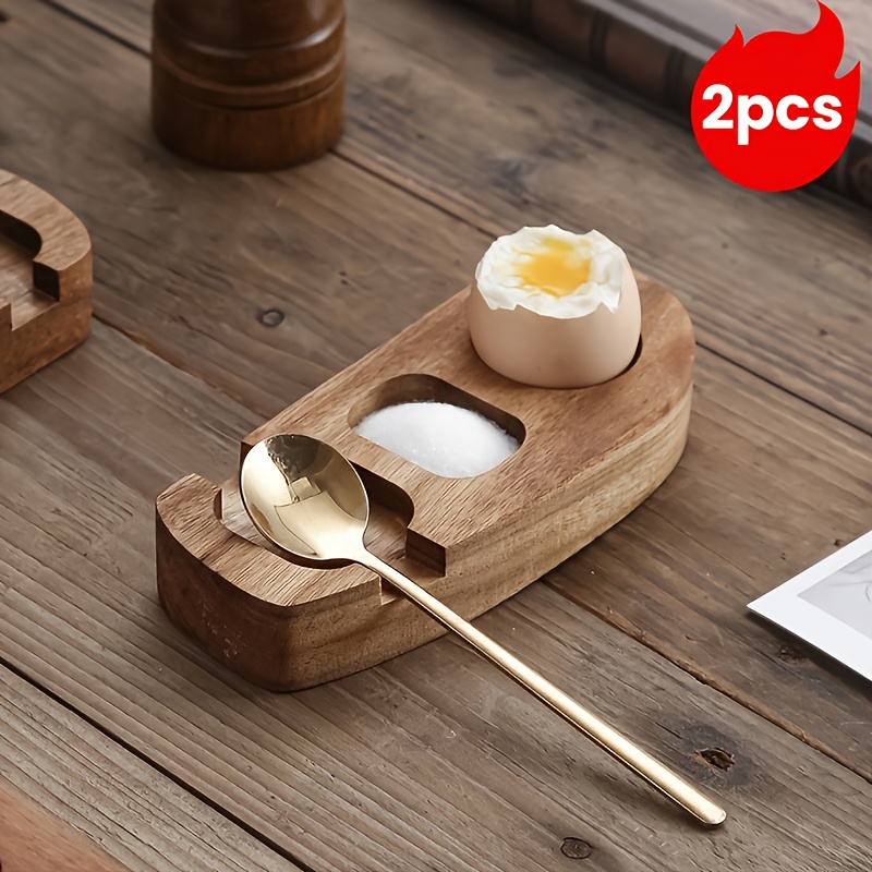 TEMU ชุด 2 ชิ้น ถ้วยไข่ไม้อะคาเซีย, ถาดใส่ไข่, ที่...