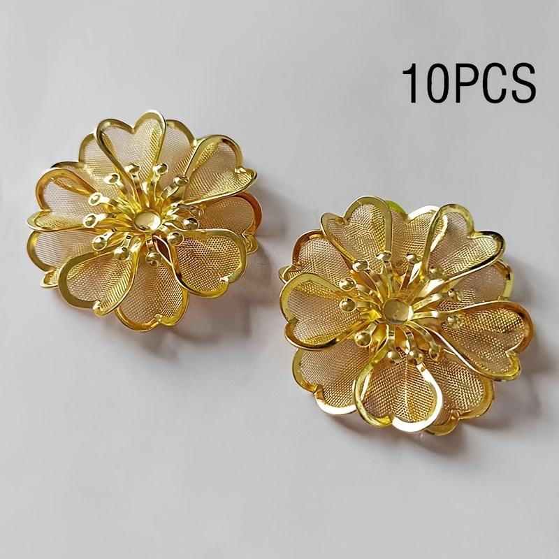 TEMU 10pcs Golden 3d Hollow Flowers, Three-layer M...