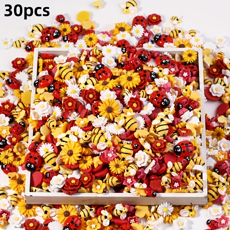 TEMU 30pcs Of Self-adhesive Resin Flowers And Mixe...