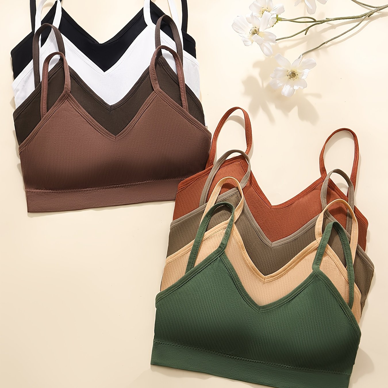 TEMU 3pcs Solid Color Ribbed Bra, Comfy & Breathab...